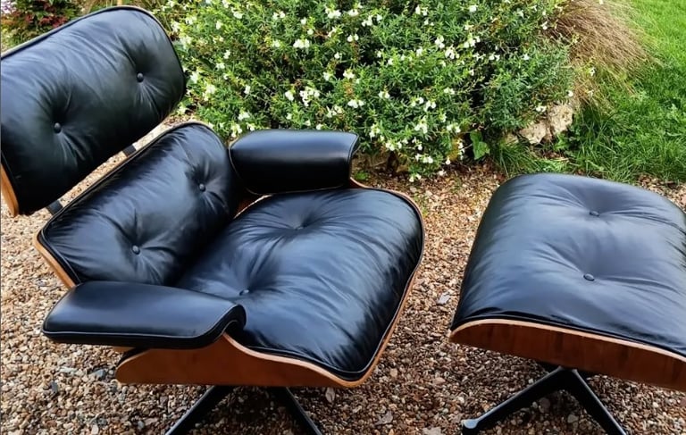 Lounge cher de Eames entièrement recouvert avec un cuir de vachette de la Maison Fichet