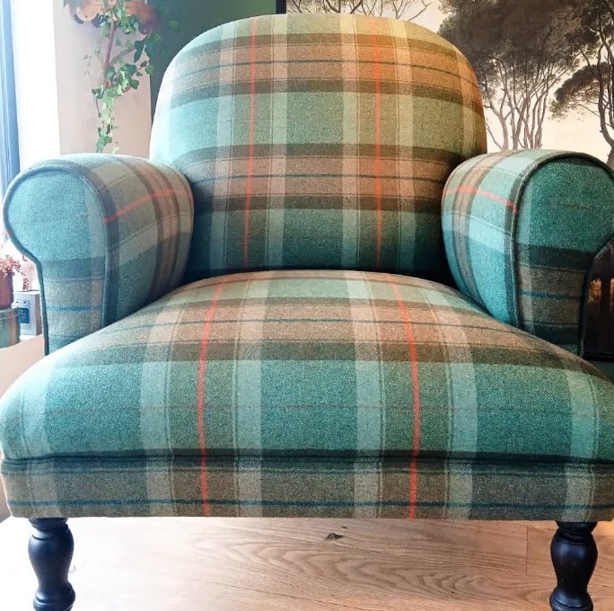 Fauteuil club habillé d'un tissu écossais (Casal)