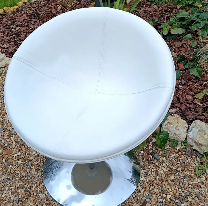 Couverture d'un fauteuil demi-sphère avec un similicuir blanc de chez Casal